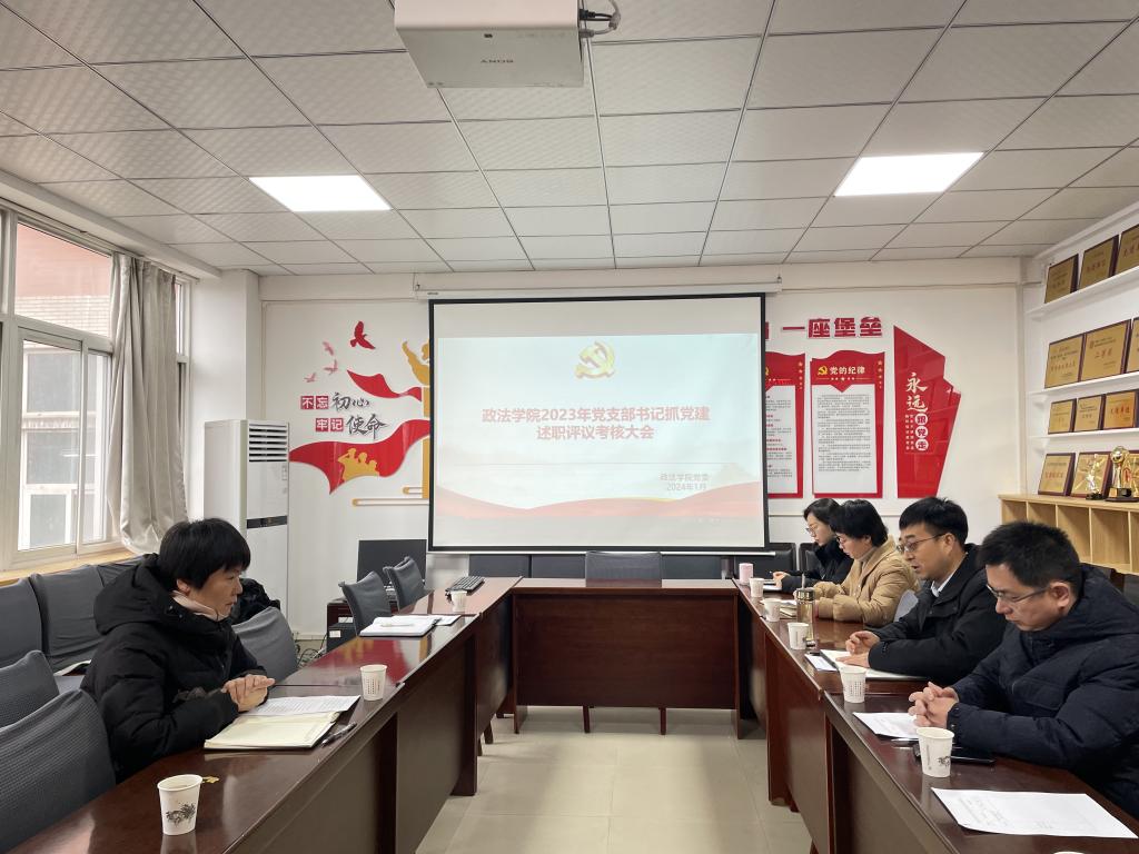 1月16日下午,政法学院在思贤楼320会议室召开2023年党支部书记抓党建述职评议考核会议。学院党委书记白志勇主持会议,党委委员担任评委。