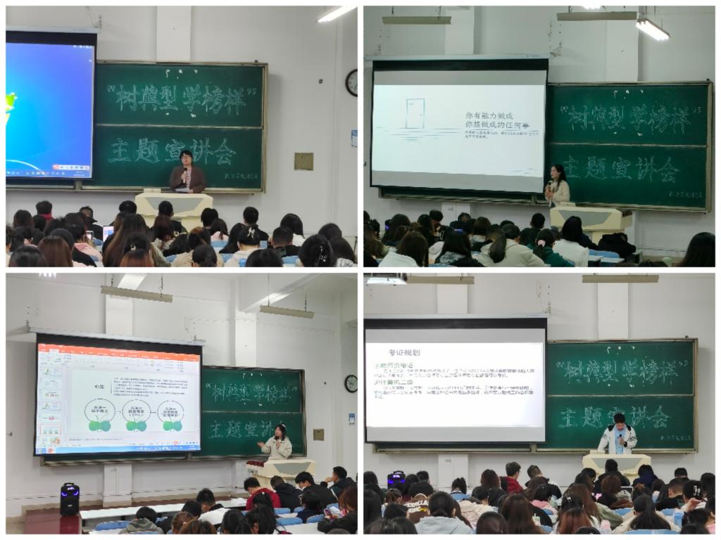 为充分发挥先进典型的示范、激励、带动作用,教育引导青年学生向榜样看齐,营造出“学有榜样,赶有方向”的学习氛围,政法学院于4月8日晚开展了“树典型 学榜样”励学力行主题宣讲会。