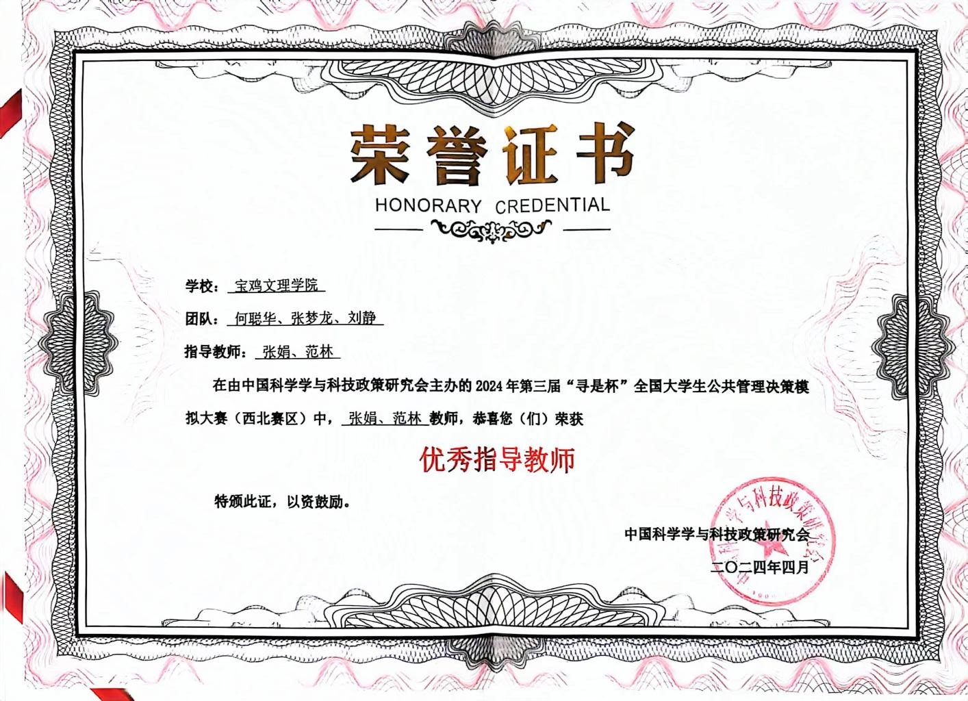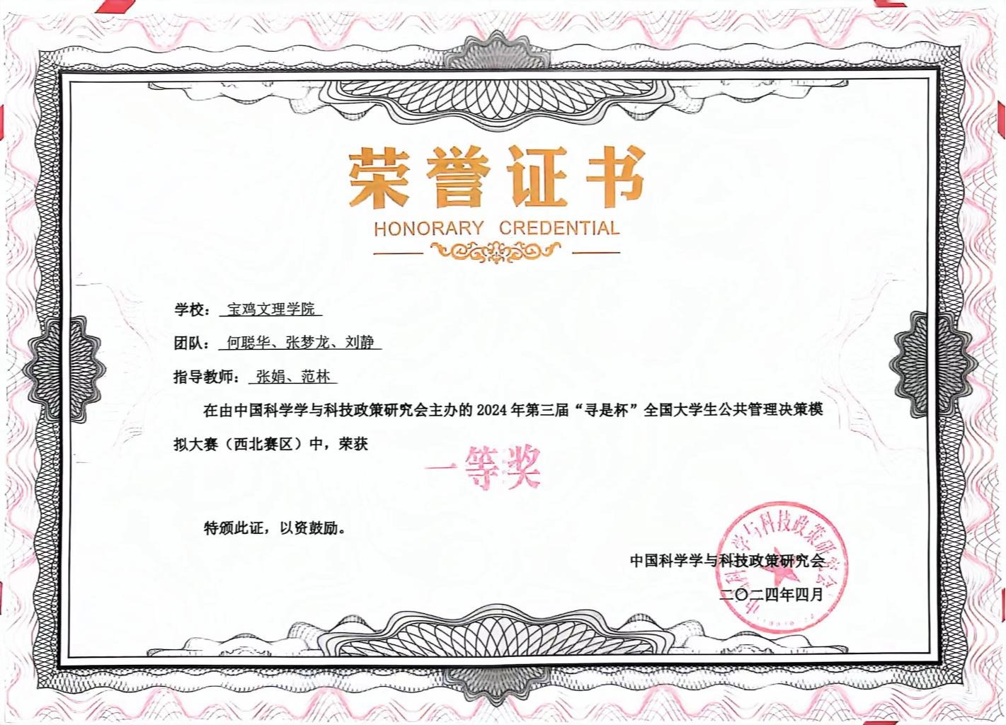2024年4月13日至14日,第三届“寻是杯”全国大学生公共管理决策模拟大赛(西北赛区)在北方民族大学举办,政法学院2022级公共管理类2班刘静、张梦龙和何聪华三位同学组队参赛并荣获一等奖,政法学院副院长范林、管理系副教授张娟荣获优秀指导教师。