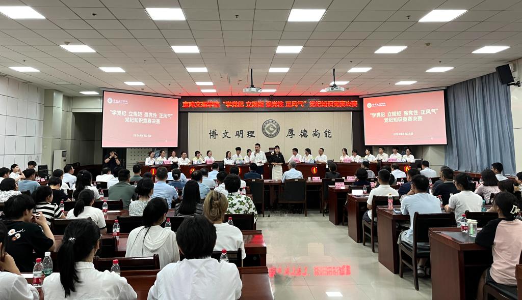 6月26日下午,我校“学党纪 立规矩 强党性 正风气”党纪知识竞赛决赛在高新校区甘棠厅举行。校党委书记赵健、党委副书记韩干校和相关职能部门负责人、二级单位党组织书记以及师生党员代表等一起观看了决赛。