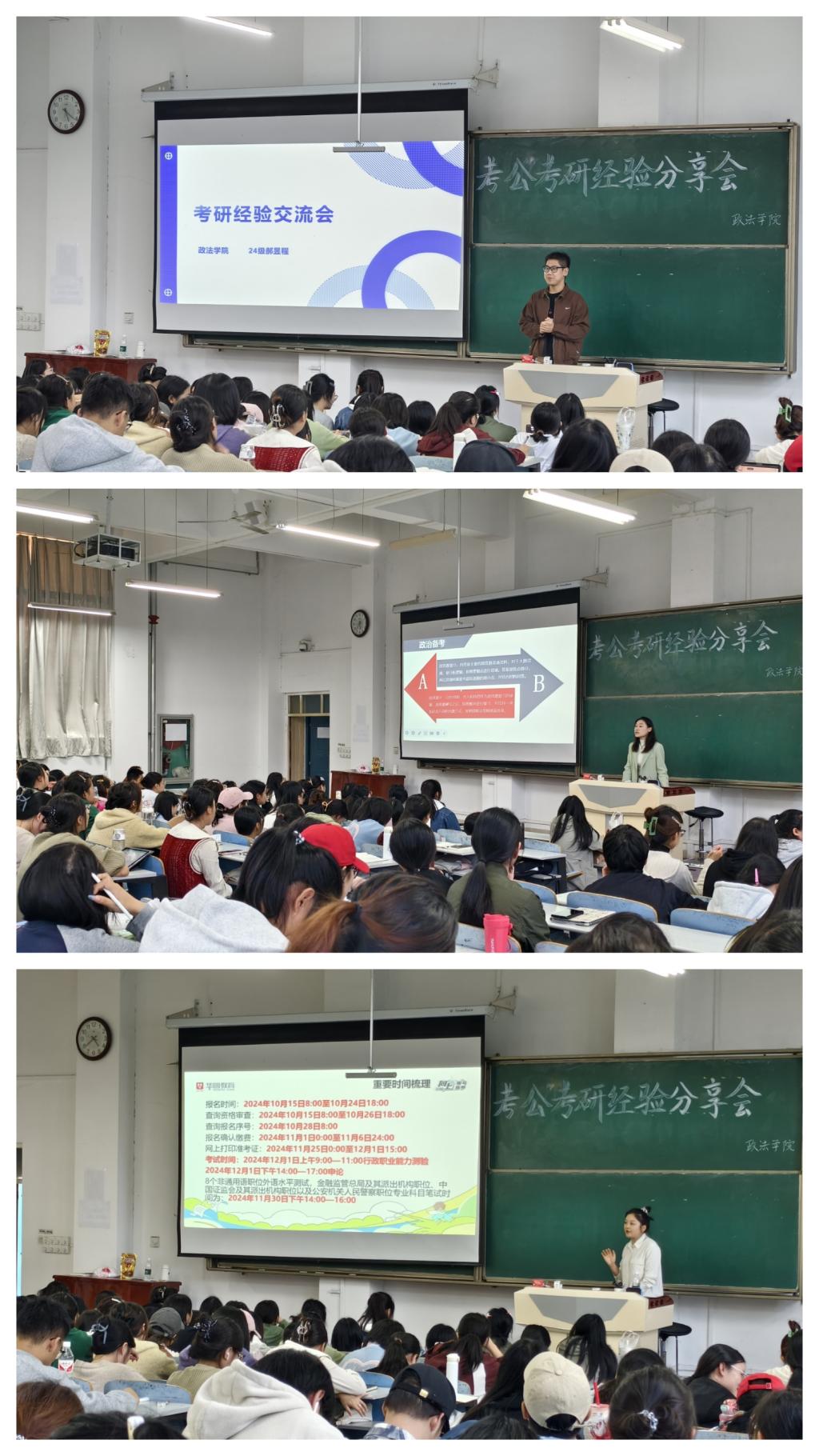 在2025届考研报名开始之际,为帮助学生明确报考院校和专业、增强备考信心,10月15日下午,政法学院在思贤楼119教室举行考研经验分享交流会,邀请学院2024级研究生代表作经验分享,200余名学生参加交流会。会议由学生辅导员马玲主持。