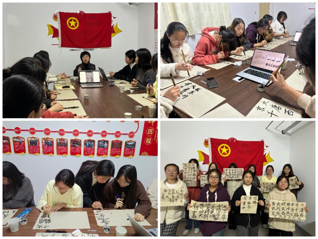 11月6日晚上,政法学院思想引领功能性团支部在“一站式”学生社区4#学生公寓党团活动室,开展了“笔墨书风华 经典润思想”主题活动。学院党委副书记、副院长赵阿妮参加活动。