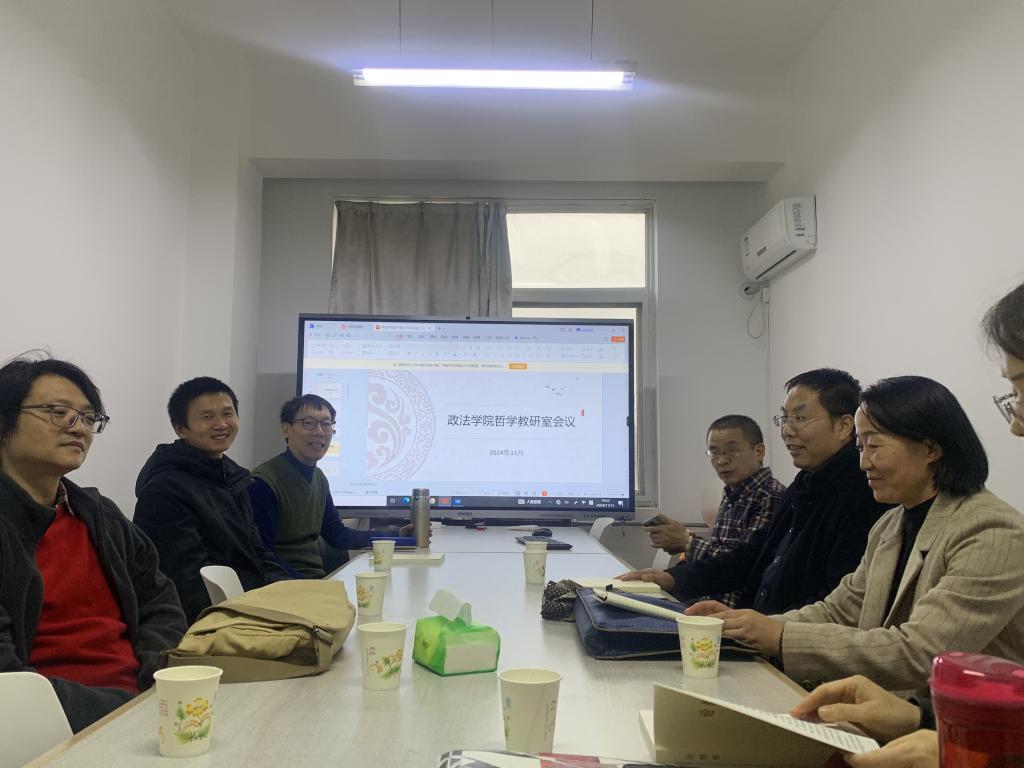 11月13日,政法学院哲学系在思贤楼213教室开展了教研活动。本次活动以全国教育大会精神为指导,结合学校“本科教学质量提升月”活动的相关要求,围绕“持续改进哲学系本科教学质量”的主题展开讨论。哲学系主任赵恒君主持活动,哲学系全体教师参加活动。