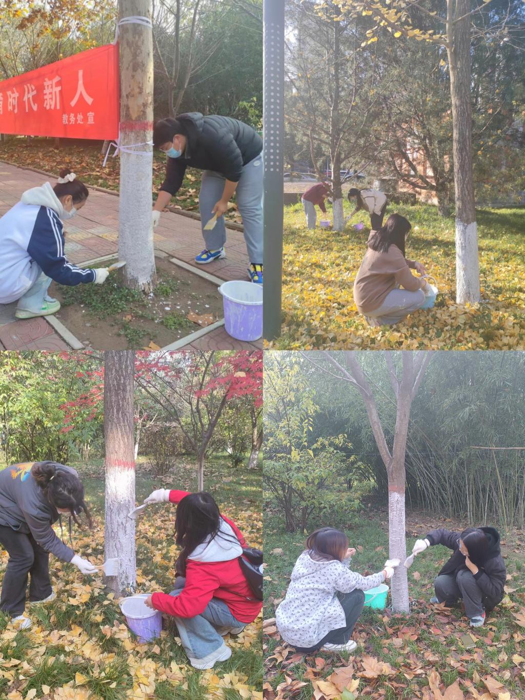 11月21日下午,政法学院以“树木涂白换新装 防虫抗冻迎寒冬”为主题,组织80余名学生在高新校区图书馆两侧区域开展了一场义务劳动活动。