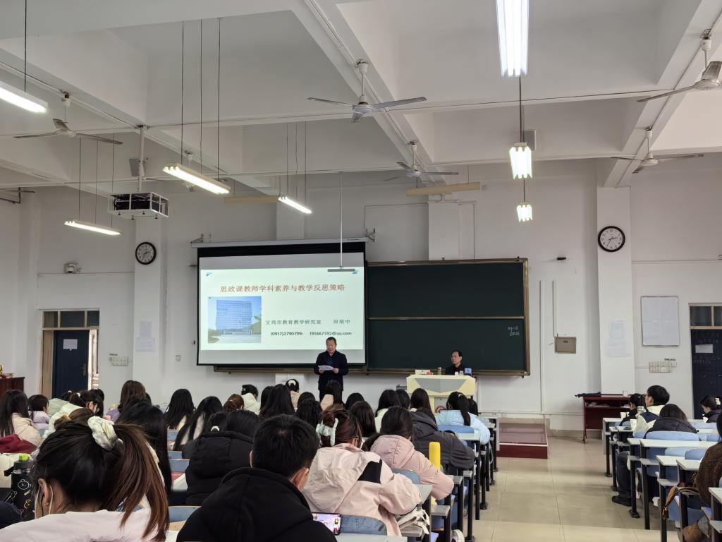 11月22日下午,陕西省基础教育名师田培中应邀在我校高新校区思贤楼119教室作了题为《思政课教师学科素养与教学反思策略》的学术报告会。此次报告为我校开展的“基础教育名师进校园”系列活动第12场。政法学院副院长杨福荣主持报告会,思想政治教育专业师生150余人参加报告会。