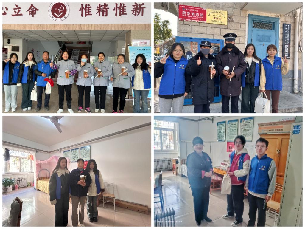 活动伊始,负责老师强调了活动的重要意义,嘱咐了注意事项。随后,在思贤楼的清扫区域,志愿者们将一杯杯暖茶送到了正在打扫卫生的阿姨手中,阿姨接过暖茶的那一刻,脸上露出了惊喜而又感动的笑容;在4号和6号学生公寓,志愿者们为楼管阿姨送上热茶,感谢楼管阿姨们平日里守护着宿舍楼的安宁,操心着同学们的生活琐事,这一杯暖茶,让她们感受到了被尊重和被惦记的温暖;在学校南门,保卫人员接过志愿者们暖茶,表示喝到了热腾腾的茶,感觉整个人都暖和起来了,感谢学生的认可和关心。