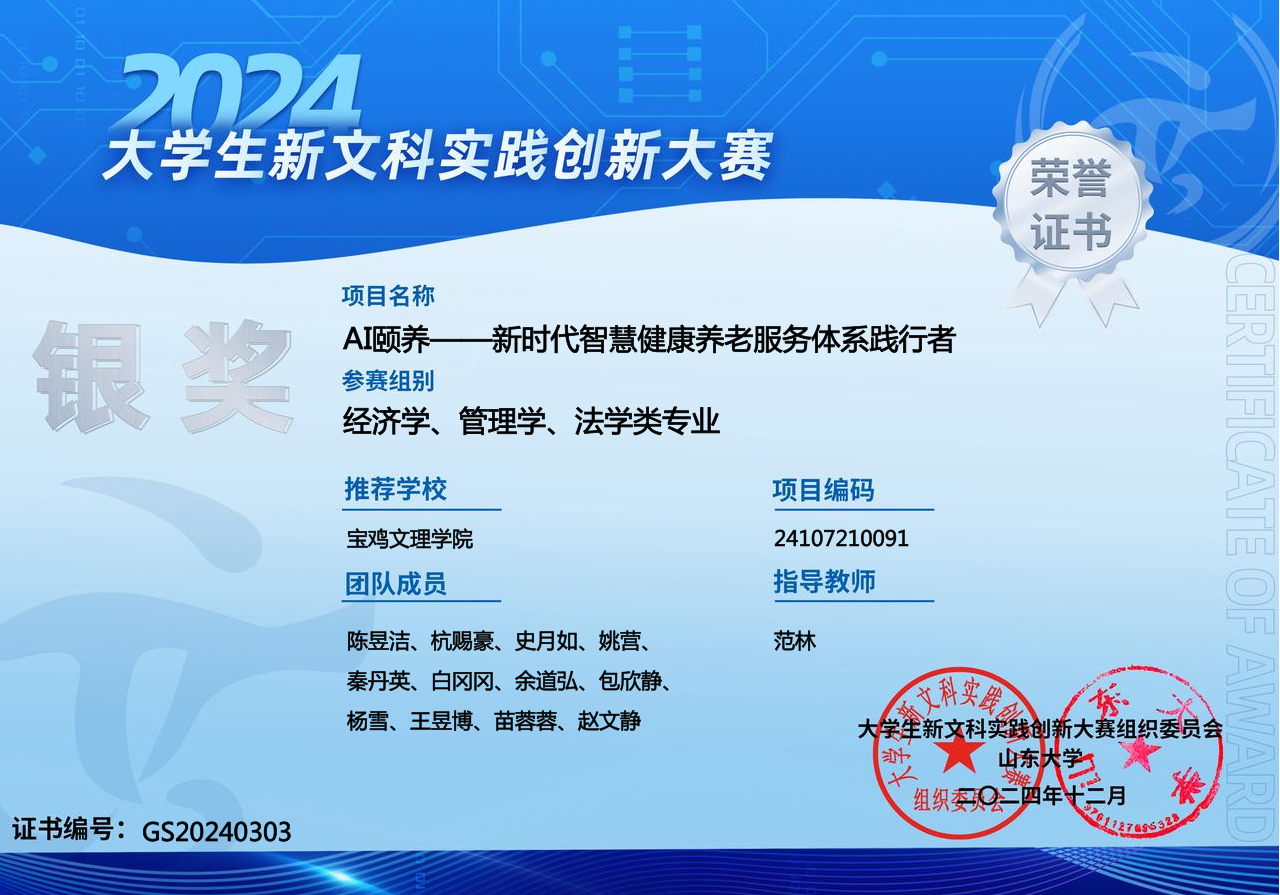 近日,首届全国大学生新文科实践创新大赛在山东济南落下帷幕,政法学院2023级思政教育专业学生陈昱洁负责的《AI颐养——新时代智慧健康养老服务体系践行者》(指导教师:范林)、谭佳怡负责的《以文化人,明德笃行——课程思政AI大模型应用于高教改革的实践》(指导教师朱丽叶、刘刚、范林)均获得全国总决赛银奖。