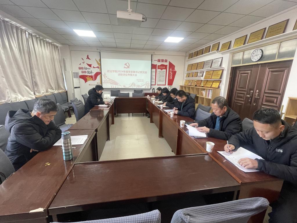 1月16日下午,政法学院在思贤楼320会议室召开2024年度党支部书记抓党建述职评议考核会。学院党委书记白志勇主持会议,党委委员担任评委。