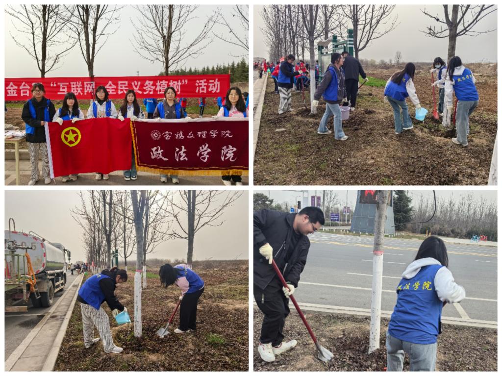 3月12日植树节当天,政法学院微尘志愿者协会参加了在宝鸡市蟠龙新区观峰大道开展的“互联网+全民义务植树”公益活动。