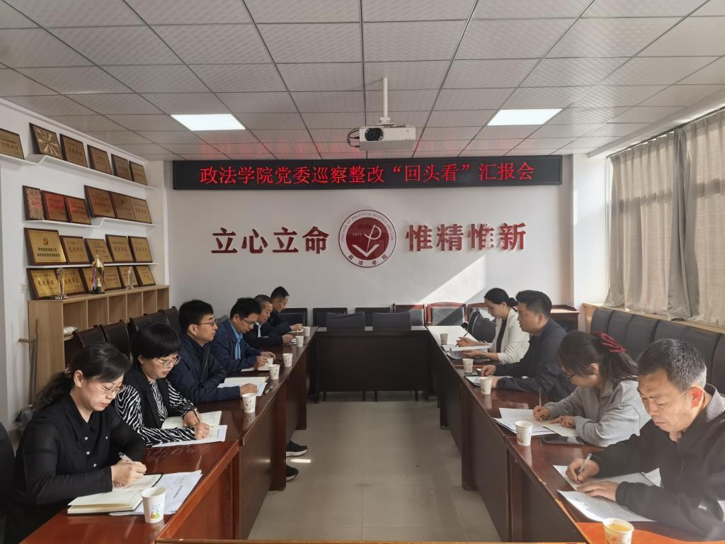 4月28日至29日,校党委巡察办组织开展政法学院党委巡察整改“回头看”工作,督导检查巡察反馈问题整改落实情况。四届校党委第四轮第一巡察组全体成员、政法学院党政领导班子成员参加巡察整改“回头看”汇报会,巡察组组长张选朝主持会议。