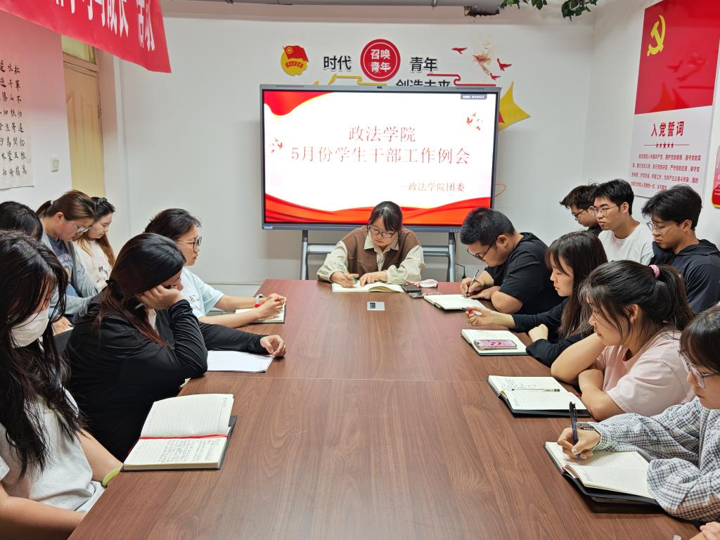 5月8日中午,政法学院团委在高新校区四号公寓“一站式”学生社区党团活动室召开5月份学生干部工作例会。学院团委书记何婷妹主持会议。