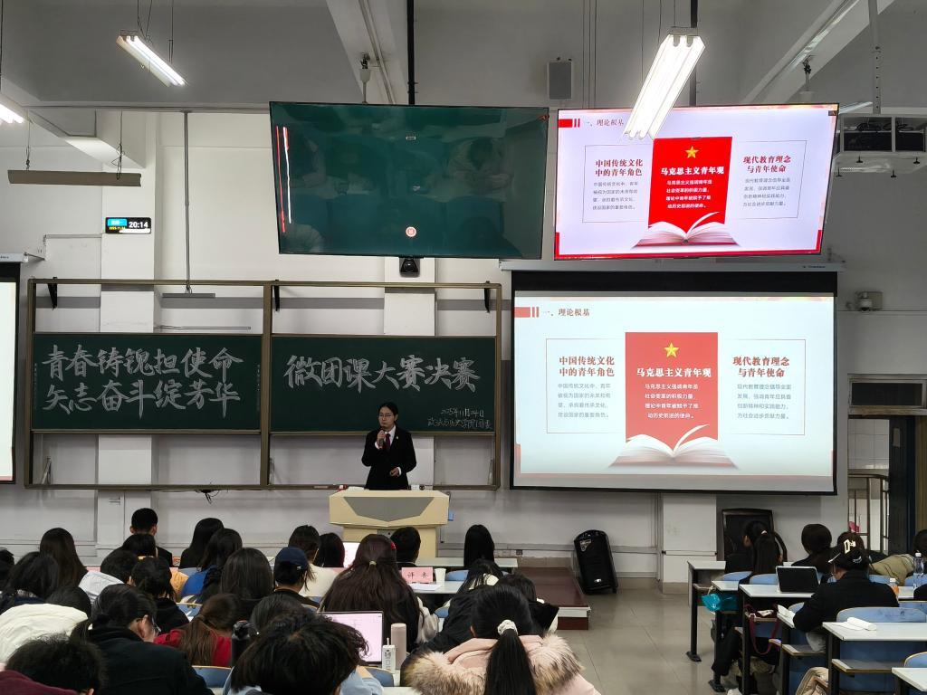 为深入学习贯彻党的二十届四中全会精神,引导广大团员青年将个人理想融入“十五五”发展大局,11月24日晚上,太阳成tyc7111cc集团于在思贤楼520教室举办“青春铸魂担使命矢志奋斗绽芳华”微团课大赛决赛,学院团委书记马玲、研究生评委及2025级新生代表100余人参加活动。